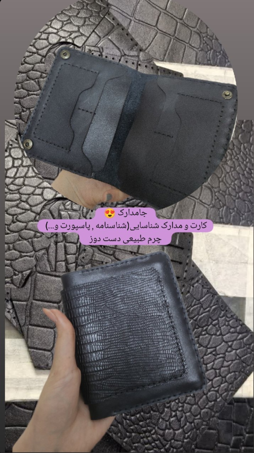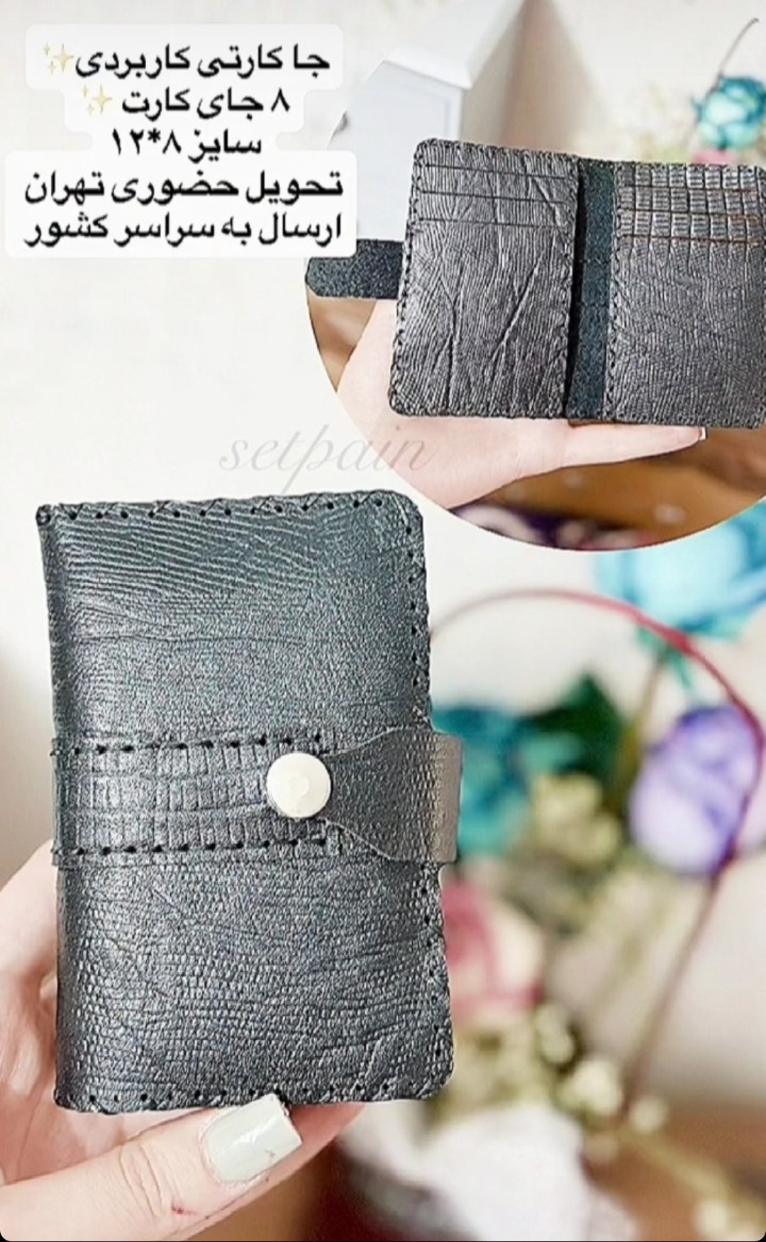 جای کارت چرم طبیعی دست دوز